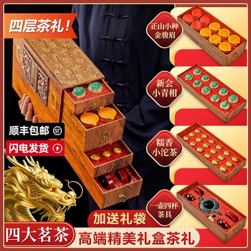 四大茗茶龙腾盛世茶叶高端礼盒装金骏眉红茶小种小青柑普洱茶送礼