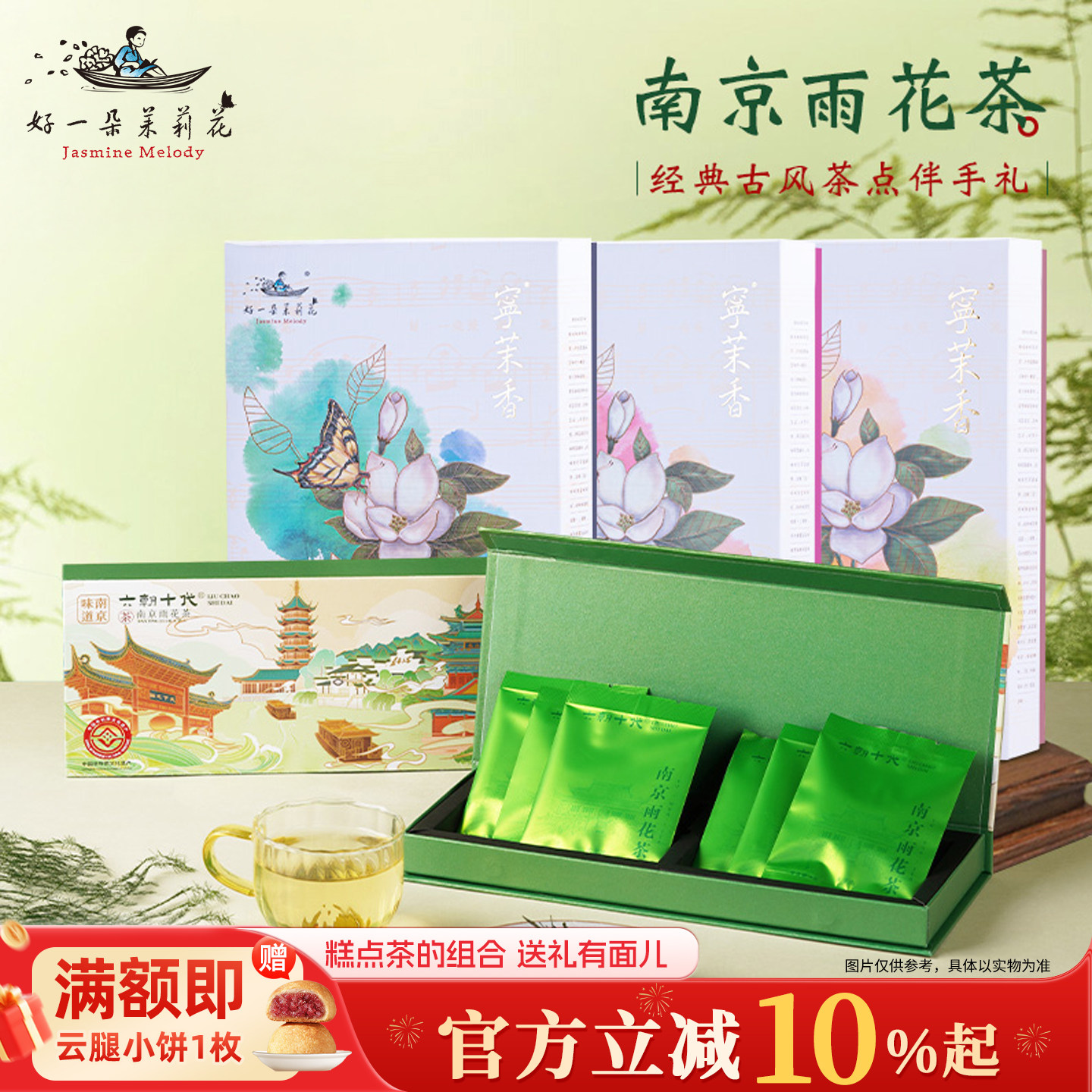 好一朵茉莉花南京特产南京雨花茶茶叶礼盒特色中式茶点点心礼物