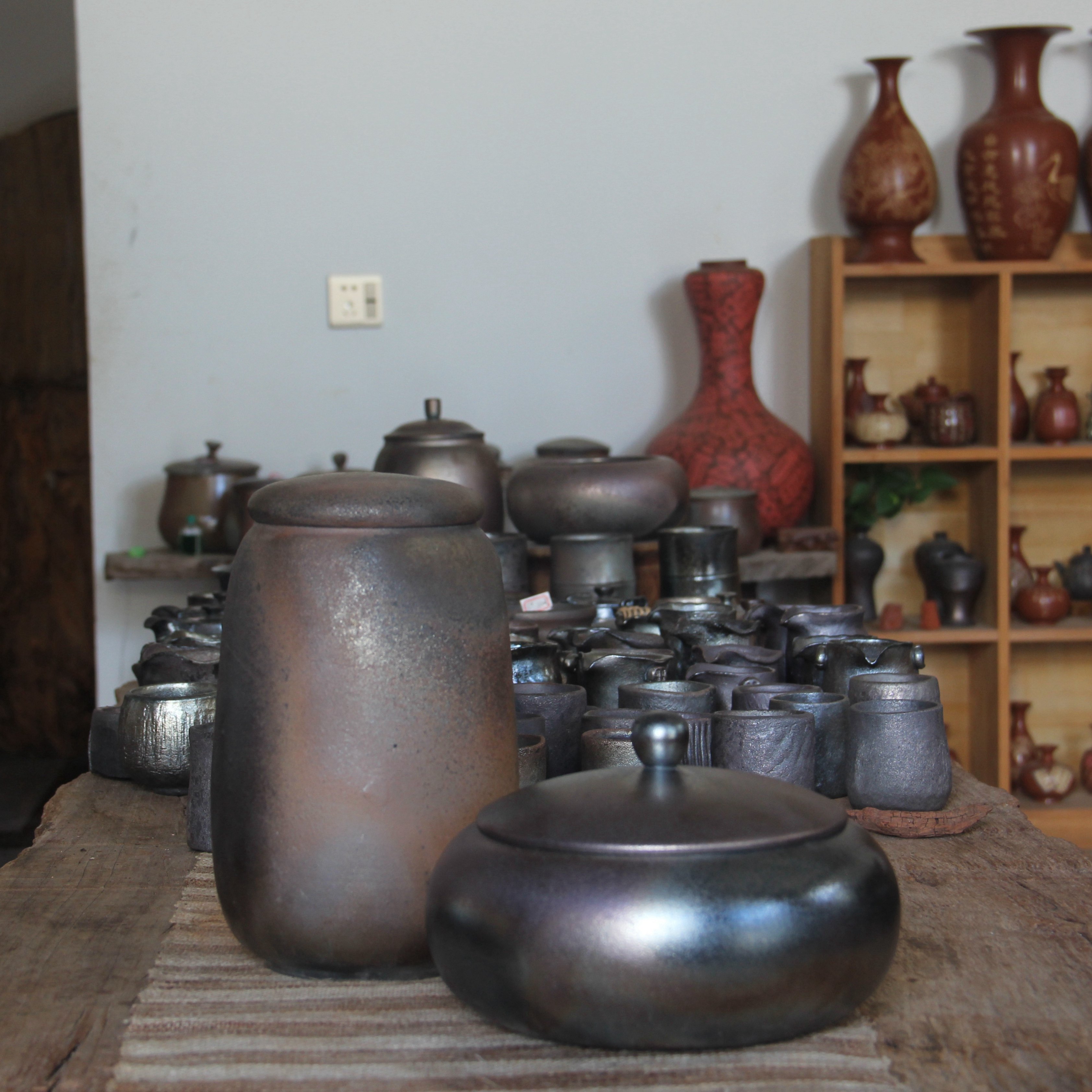 自然落灰柴烧醒茶罐大号红泥传统柴烧散茶罐云南建水紫陶茶叶罐