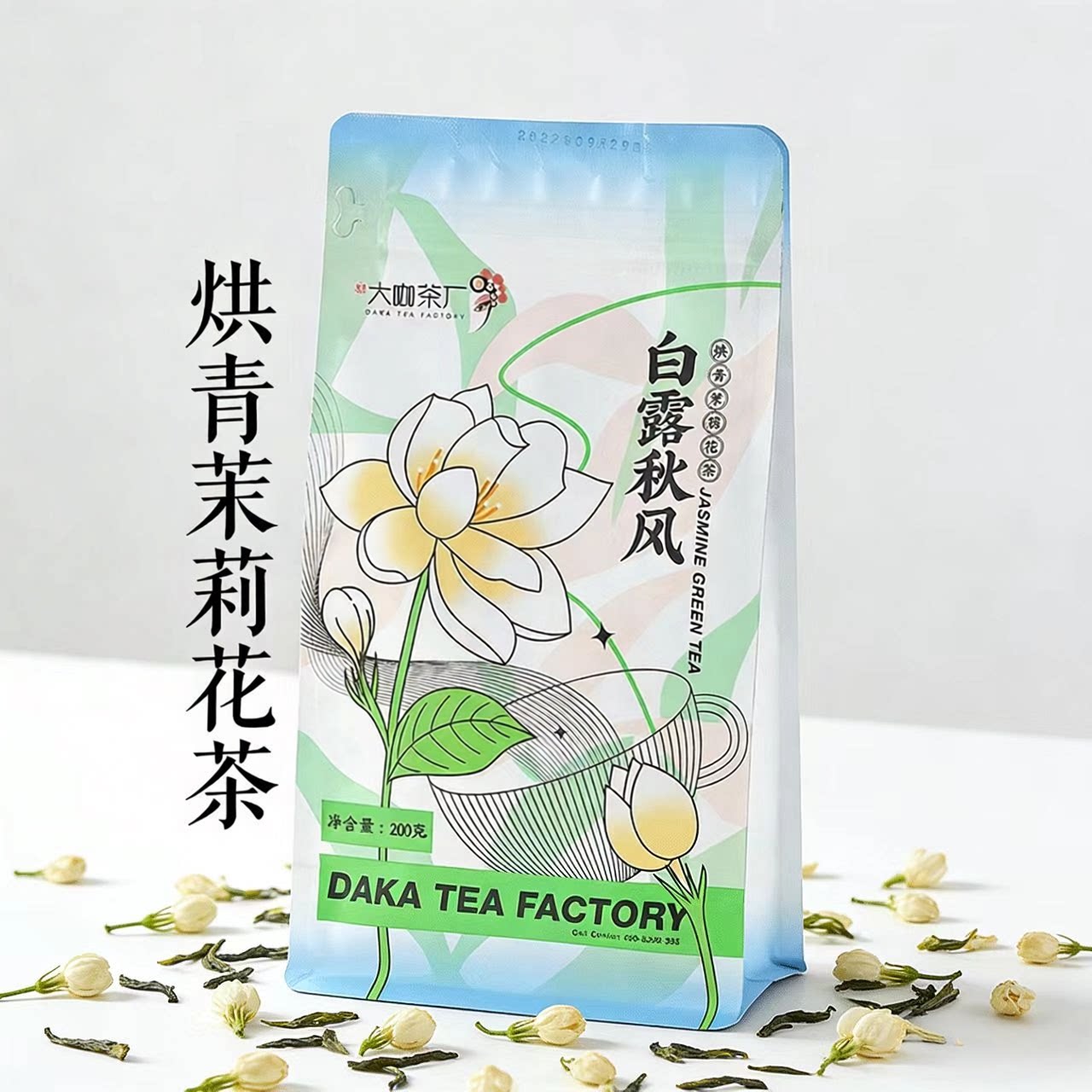 圣唐大咖白露秋风白露茉莉香烘青绿茶三窨毛尖茶叶奶茶店专用200g