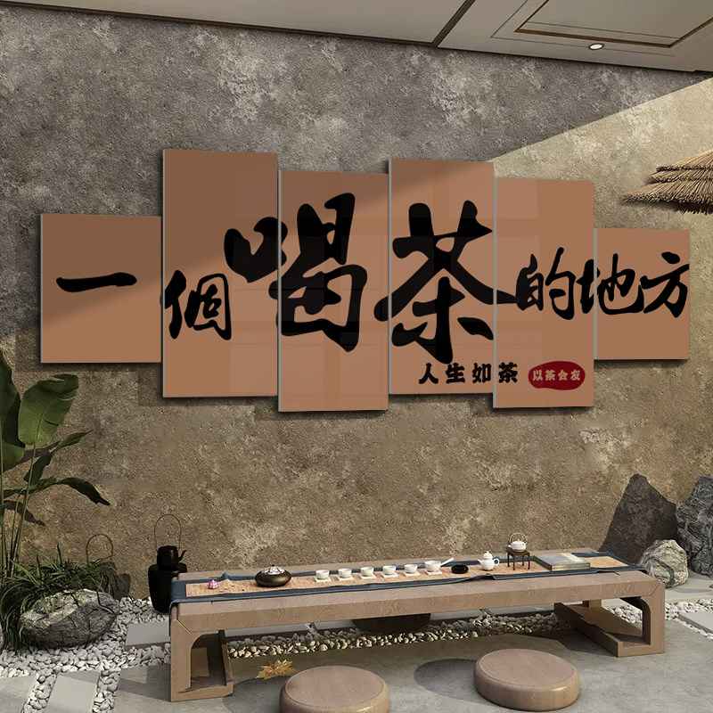 茶室背景墙面装饰画茶道文化墙贴3d茶楼社客厅书房茶叶店布置自粘