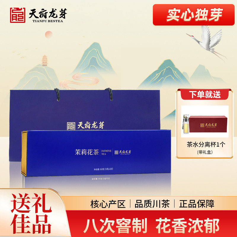 天府龙芽新茶四川飘雪茉莉花茶特级浓香型茶叶高档礼盒装60g送礼