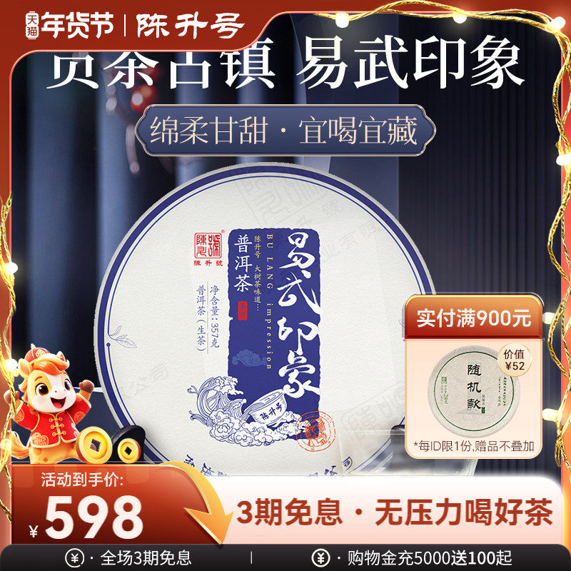 2022陈升号易武印象大树生普洱茶生茶357g普洱生茶饼茶云南茶叶饼