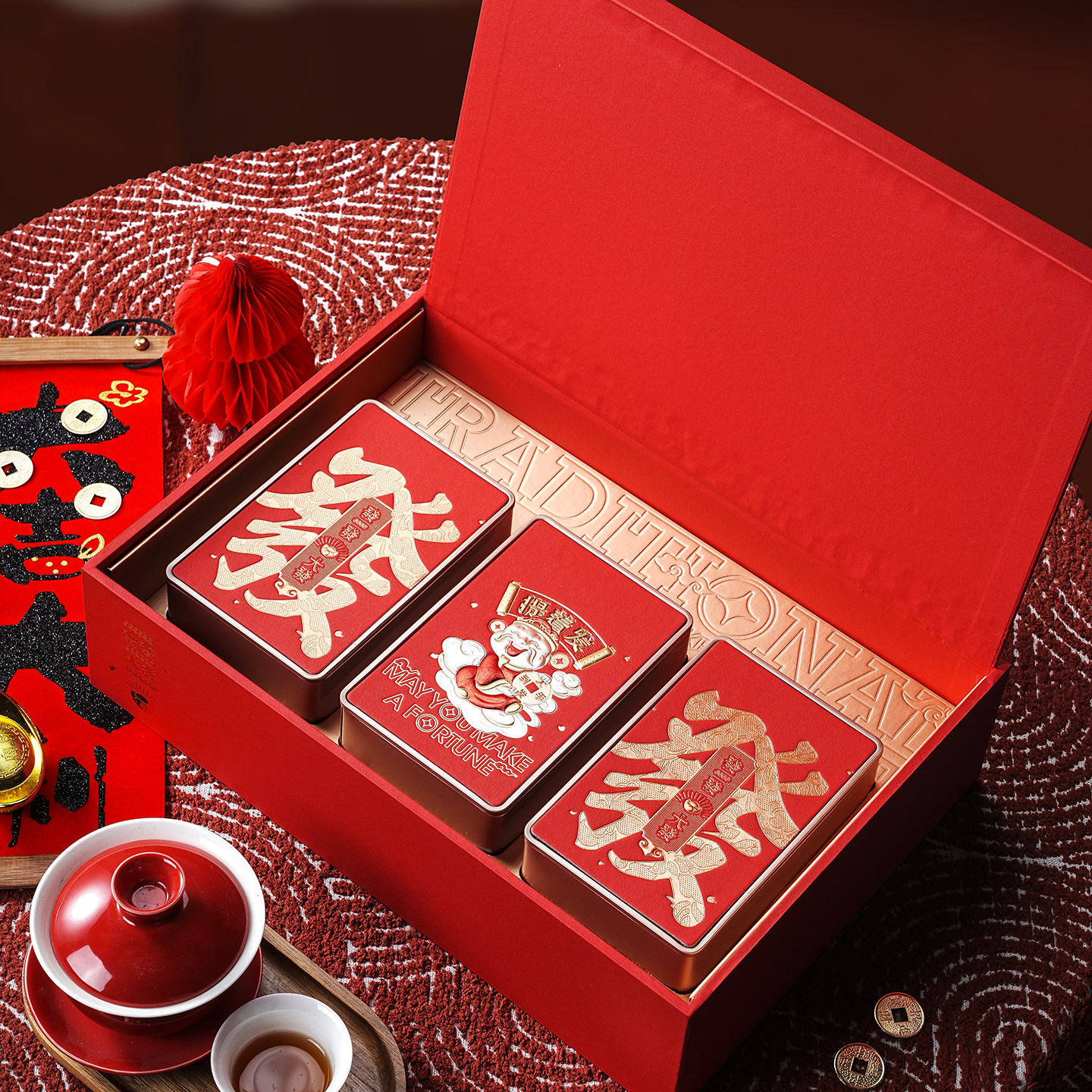 2026新年新款春节茶叶包装礼盒金骏眉大红袍岩茶茶叶礼盒空盒定制