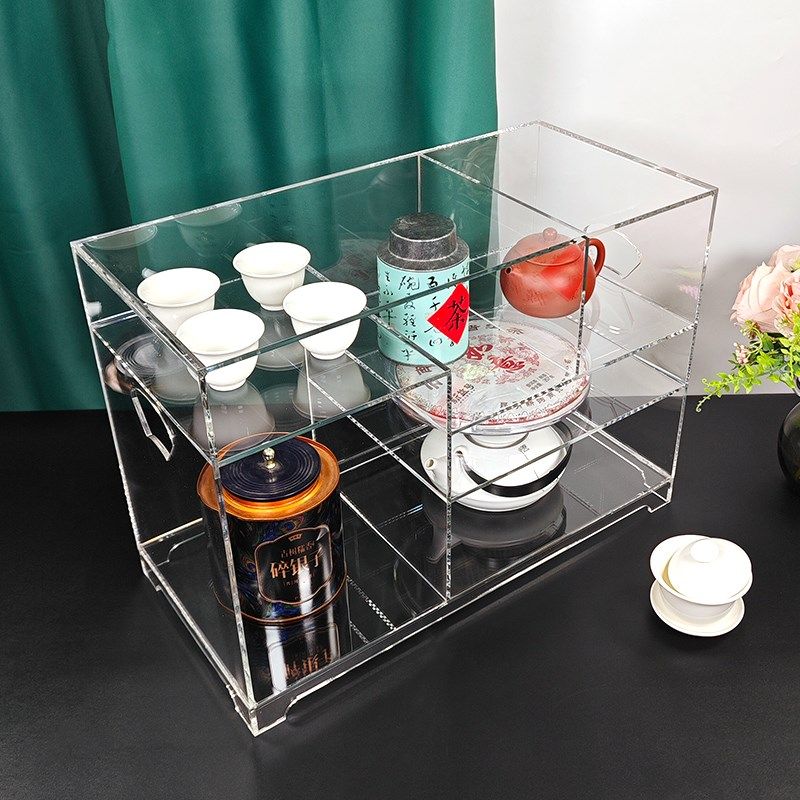 茶具收纳盒带盖防尘透明茶几桌面茶叶茶杯整理存放功夫茶壶置物架