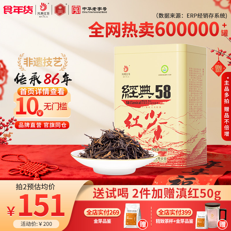 2025年新茶凤牌红茶滇红经典58正宗云南凤庆茶叶特级浓香380g口粮