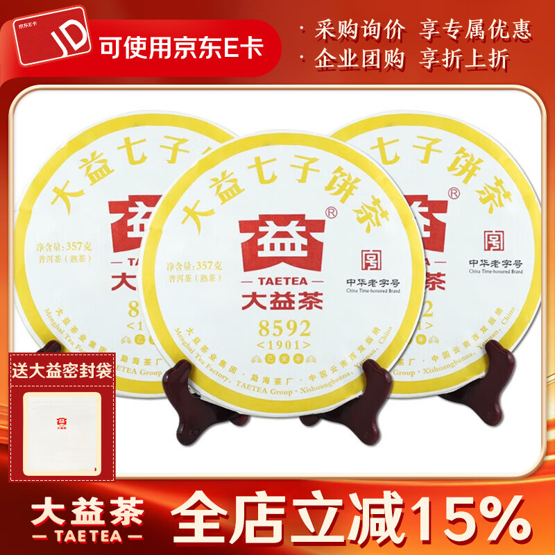 大益茶叶 普洱茶 茶叶 熟茶 普洱茶8592 随机批次发货 2019年【3饼装】357克