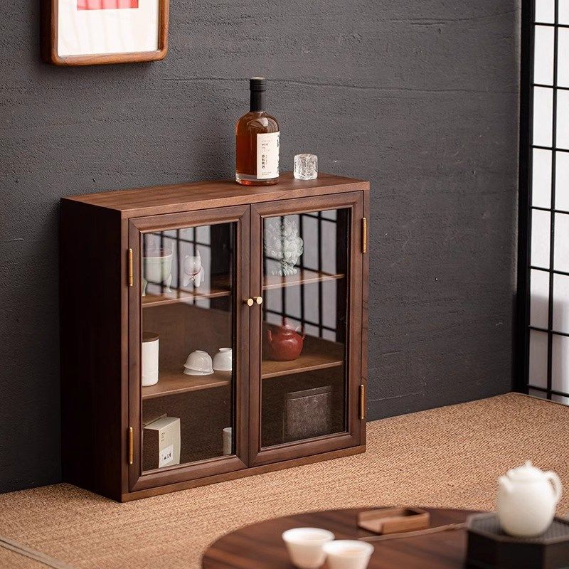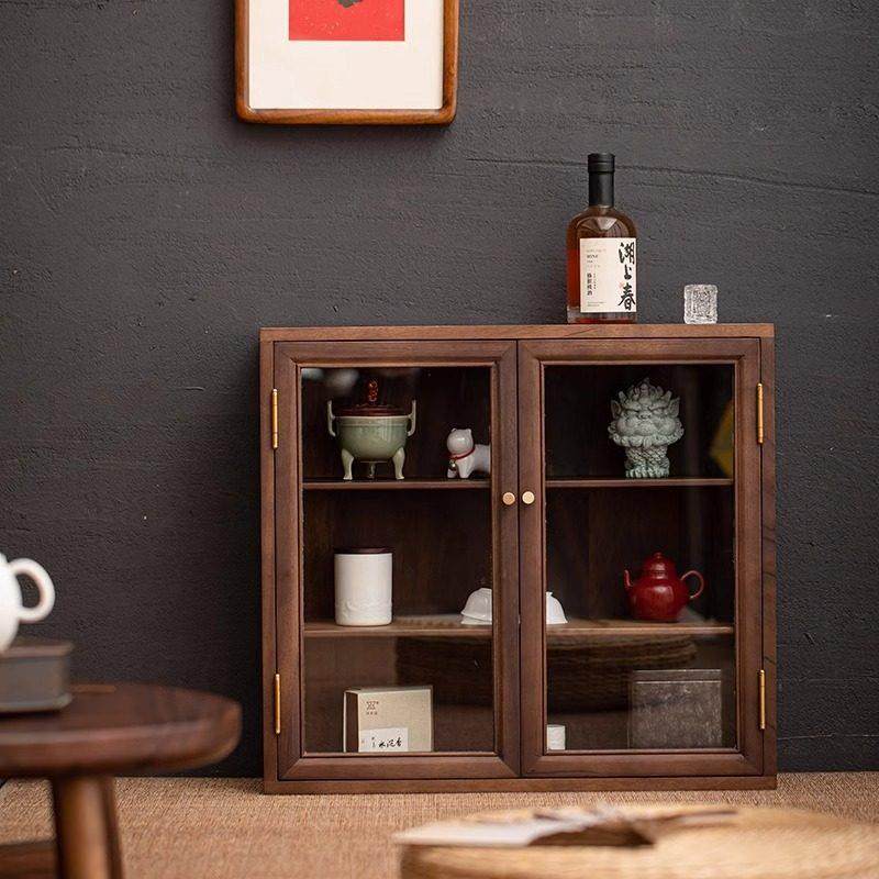 胡桃木桌面小型收纳柜储物柜实木家用茶室茶具茶叶罐防尘柜置物柜