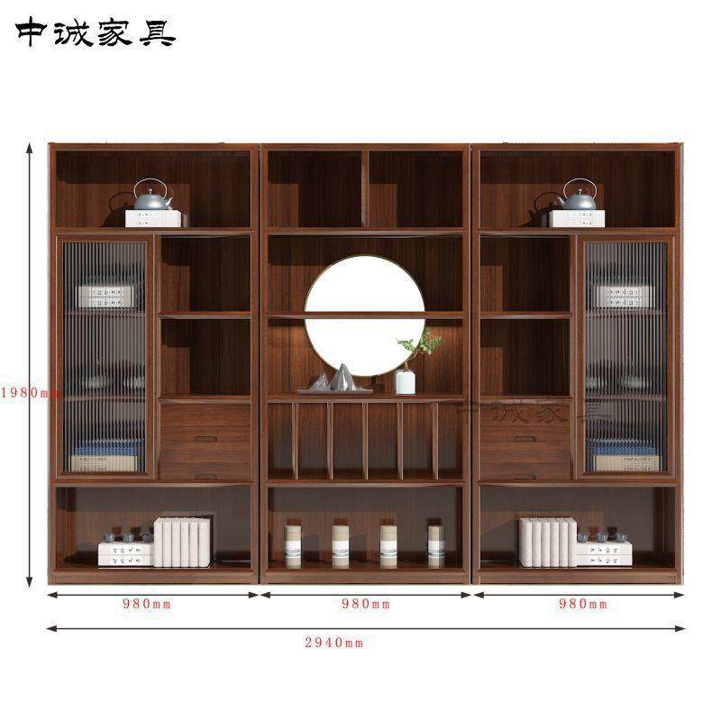 新中式办公室文件柜实木办公桌茶叶储物柜禅意展示柜博古架陈列柜