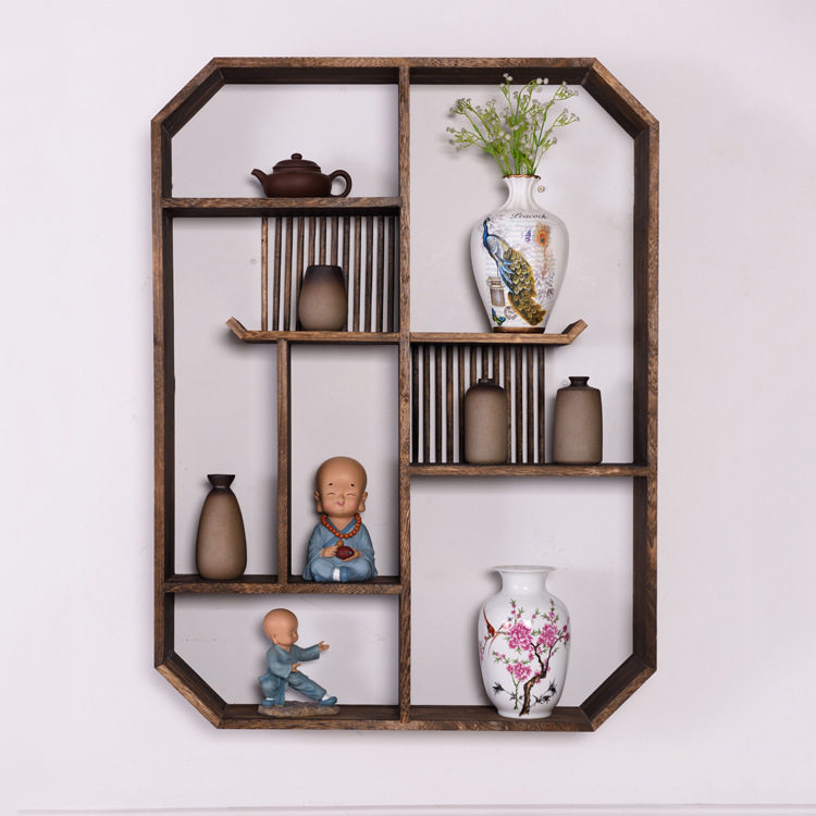 博古架实木中式壁挂茶架展示架茶叶架子置物架墙挂式茶壶架摆架