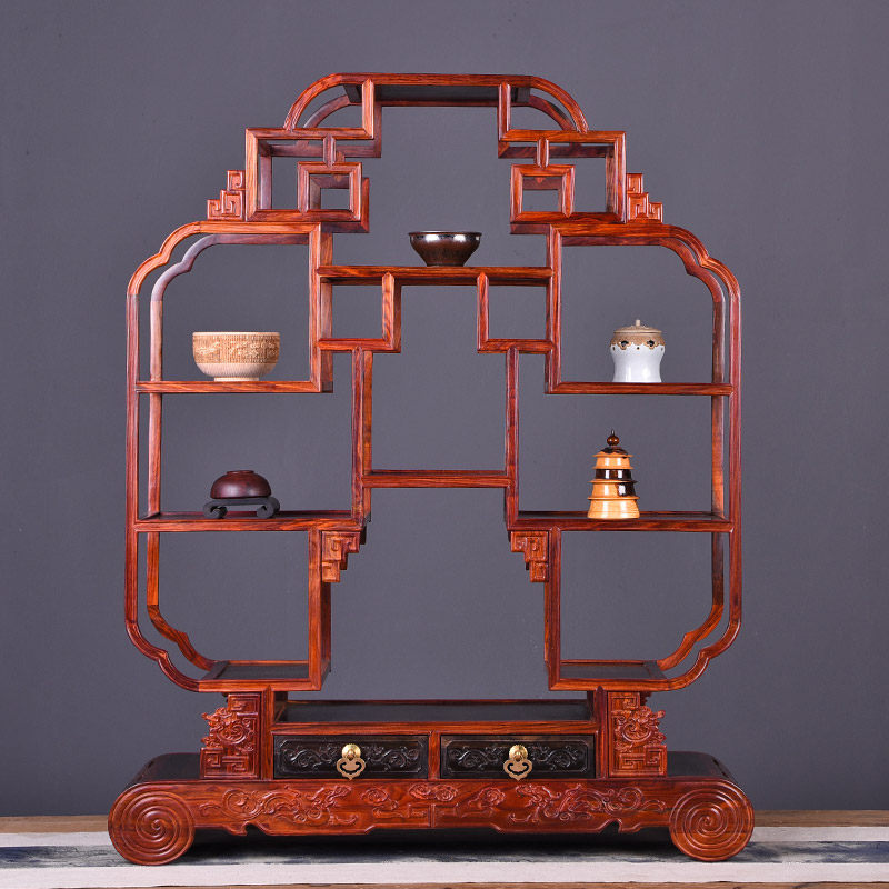 仙游老挝大红酸枝拐子纹多宝阁交趾黄檀雕花博古架茶叶柜客厅置物