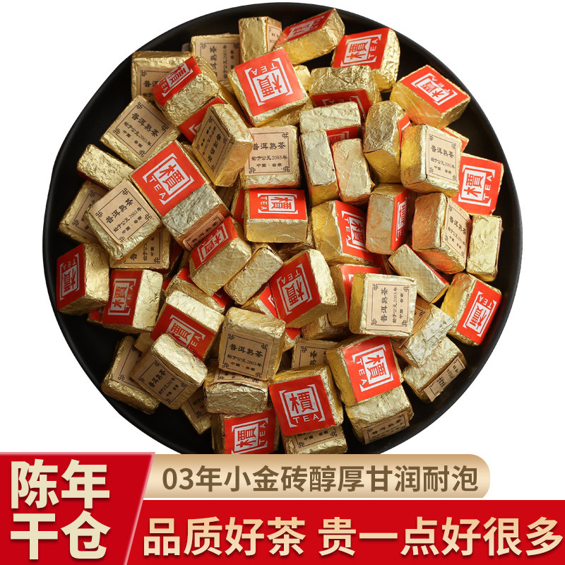 03年云南普洱茶熟茶小金砖沱茶勐海古树方砖陈年醇香普洱茶叶礼盒
