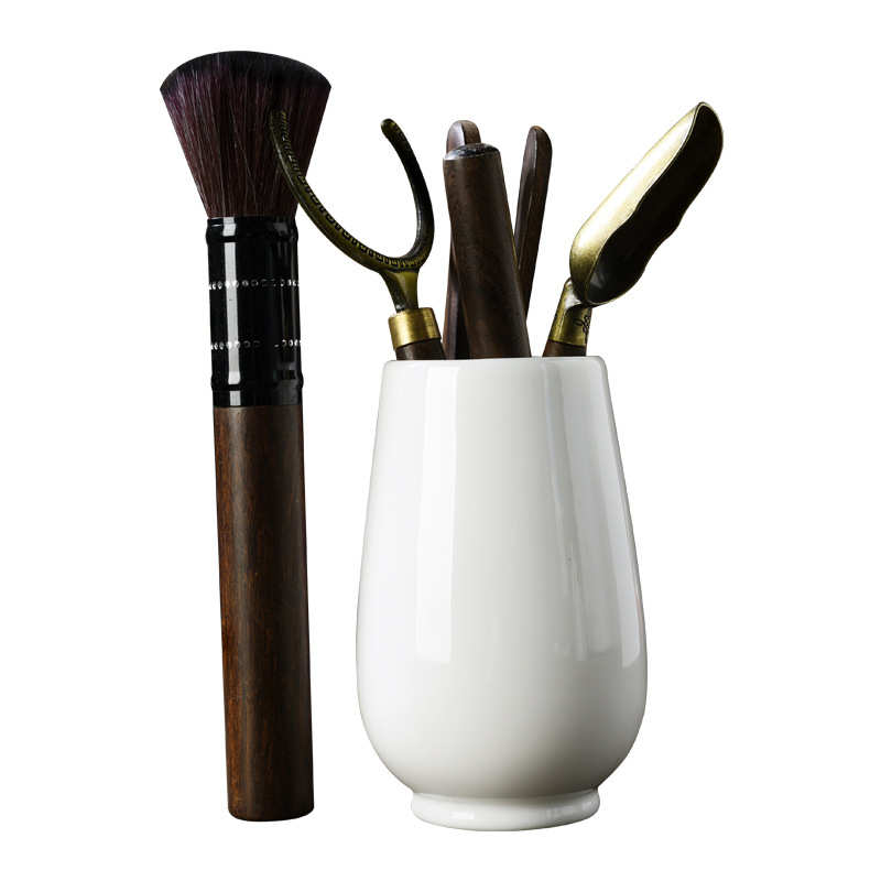 白瓷茶道六君子套装功夫茶具配件茶道筒配双用黑檀木养壶笔茶叶罐