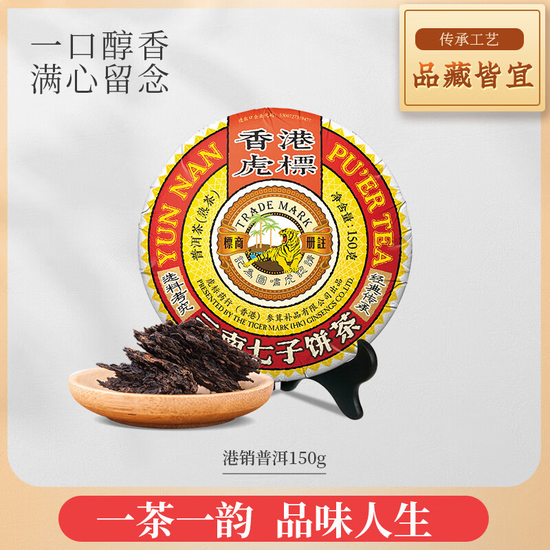 虎标 香港品牌 茶叶普洱茶熟茶 饼茶盒装150g/饼 经典标杆口粮茶自饮