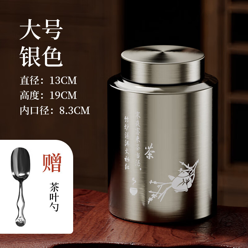 京适茶叶罐大号密封罐旅行便携存储罐半一斤大容量不锈钢茶叶盒空盒 大号银色【配茶勺】 2100ml
