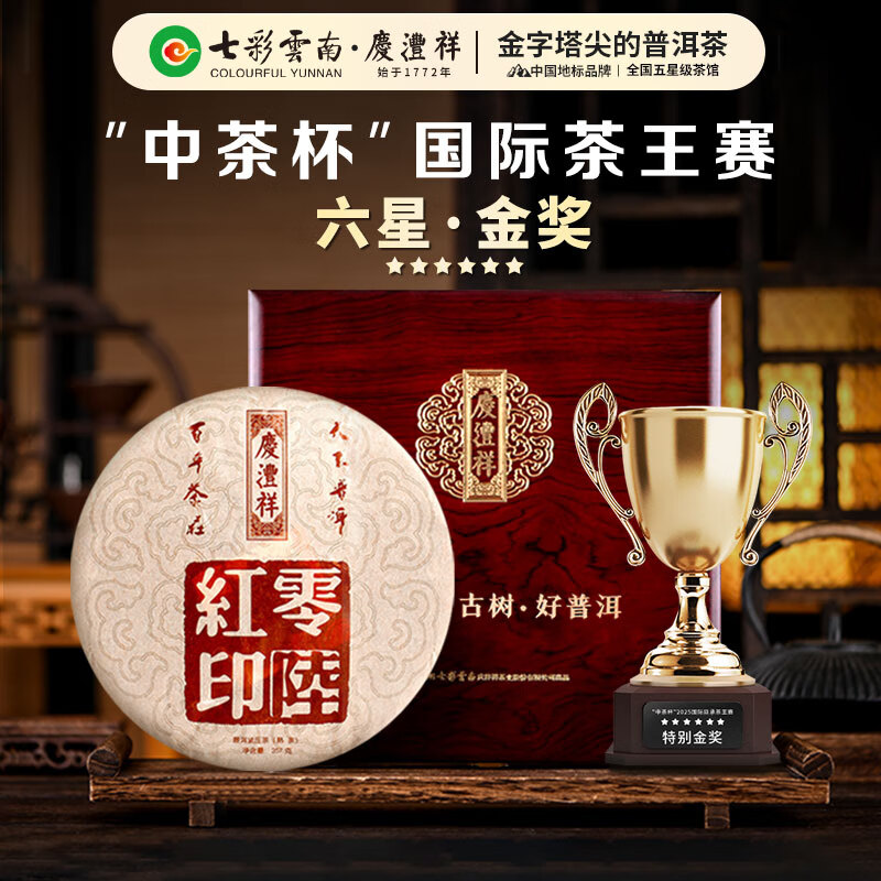 七彩云南庆沣祥普洱茶 2006年易武古树普洱熟茶饼 零陆红印357g茶叶礼盒装