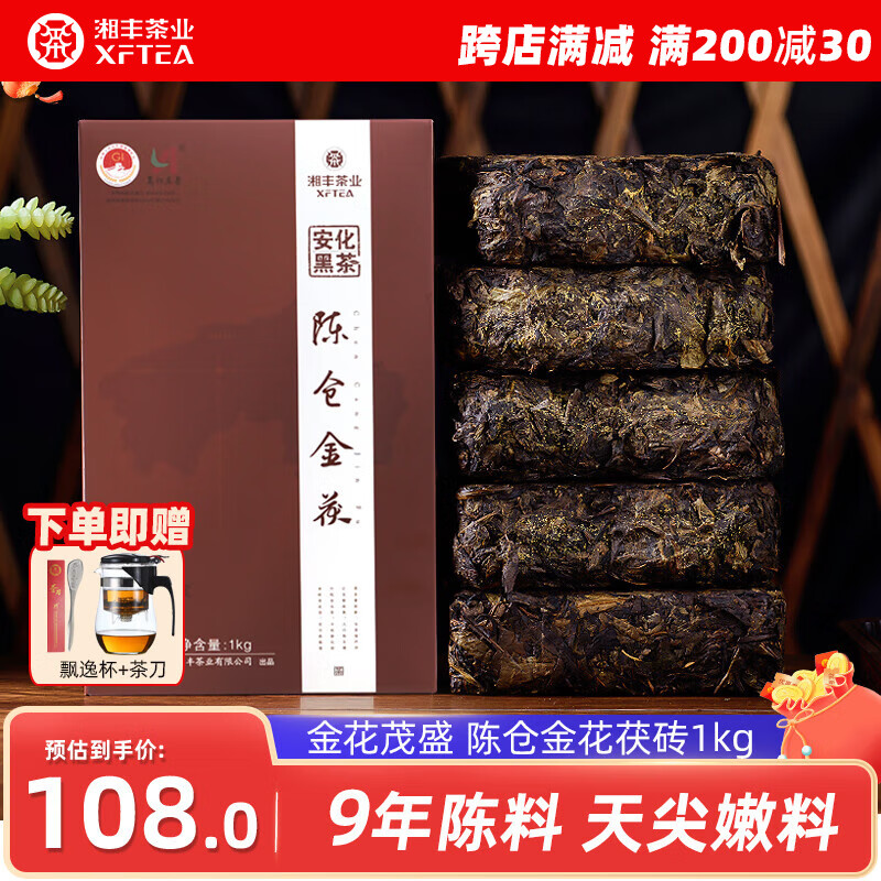 湘丰安化黑茶湖南特产茶叶正宗金花茯砖茶节日送礼口粮茶叶自己喝 9年陈 陈仓金茯黑茶1kg