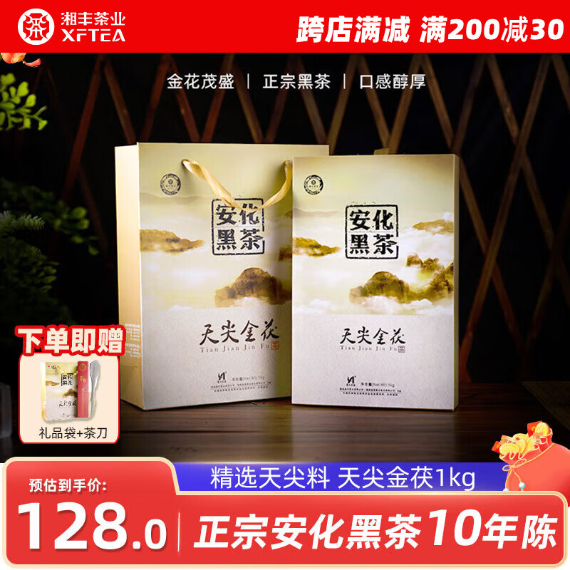湘丰安化黑茶湖南特产茶叶正宗金花茯砖茶节日送礼口粮茶叶自己喝 10年陈 天尖金茯黑茶1kg