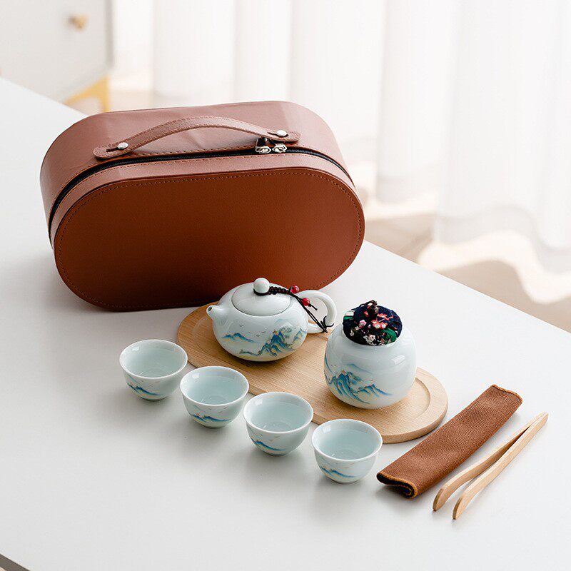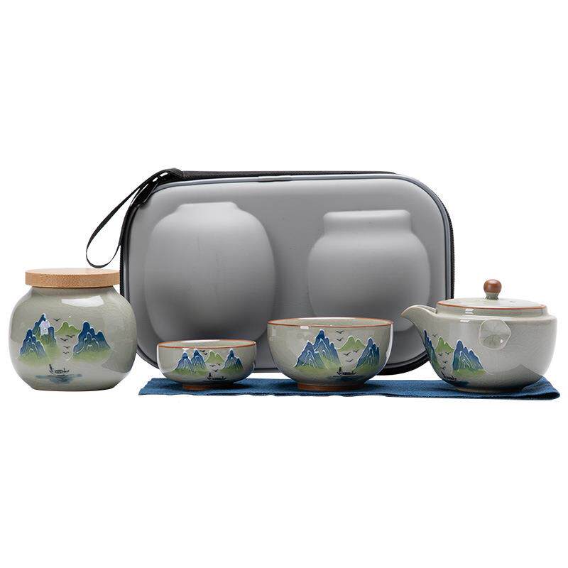 哥旅行茶具手绘装茶壶套户外功具夫茶便携包茶叶罐茶2024-08-杯窑
