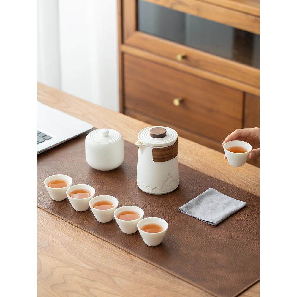 户外高端羊脂玉旅行茶具一壶四杯可携式带茶叶罐旅游露营可定制