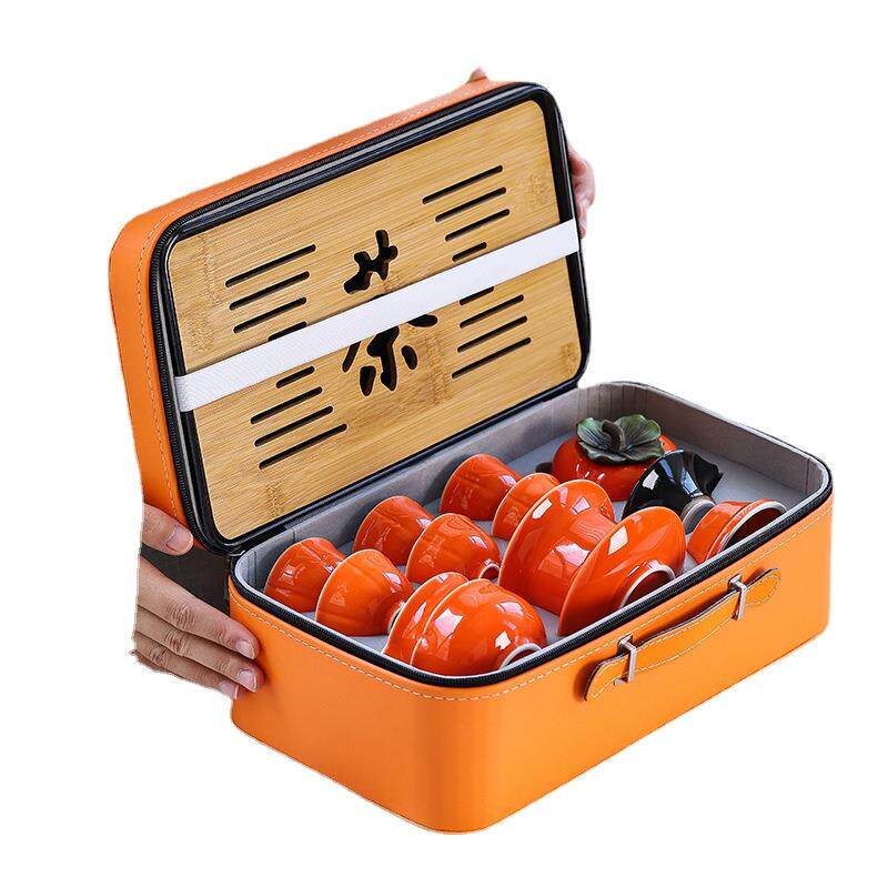 柿柿事事如意陶瓷功夫茶具旅行套装带茶叶罐整套公司活动礼品