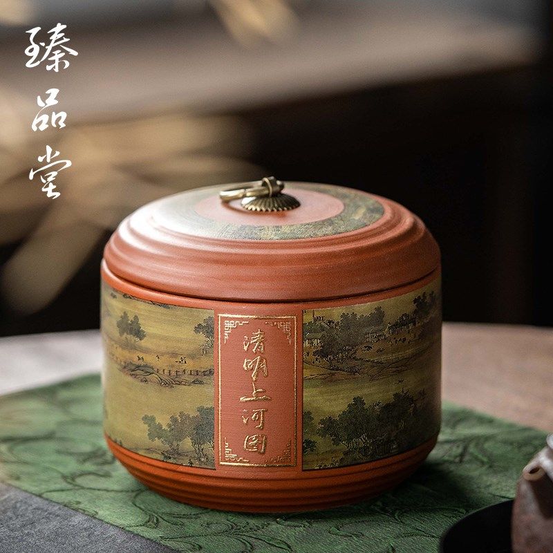 臻品堂紫砂茶叶罐家用大号陶瓷储存罐密封罐普洱老茶存茶罐醒茶罐