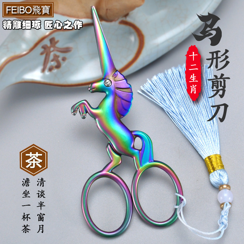 2026年马形生肖茶艺剪子不锈钢手工创意十字绣花高档茶叶复古剪刀