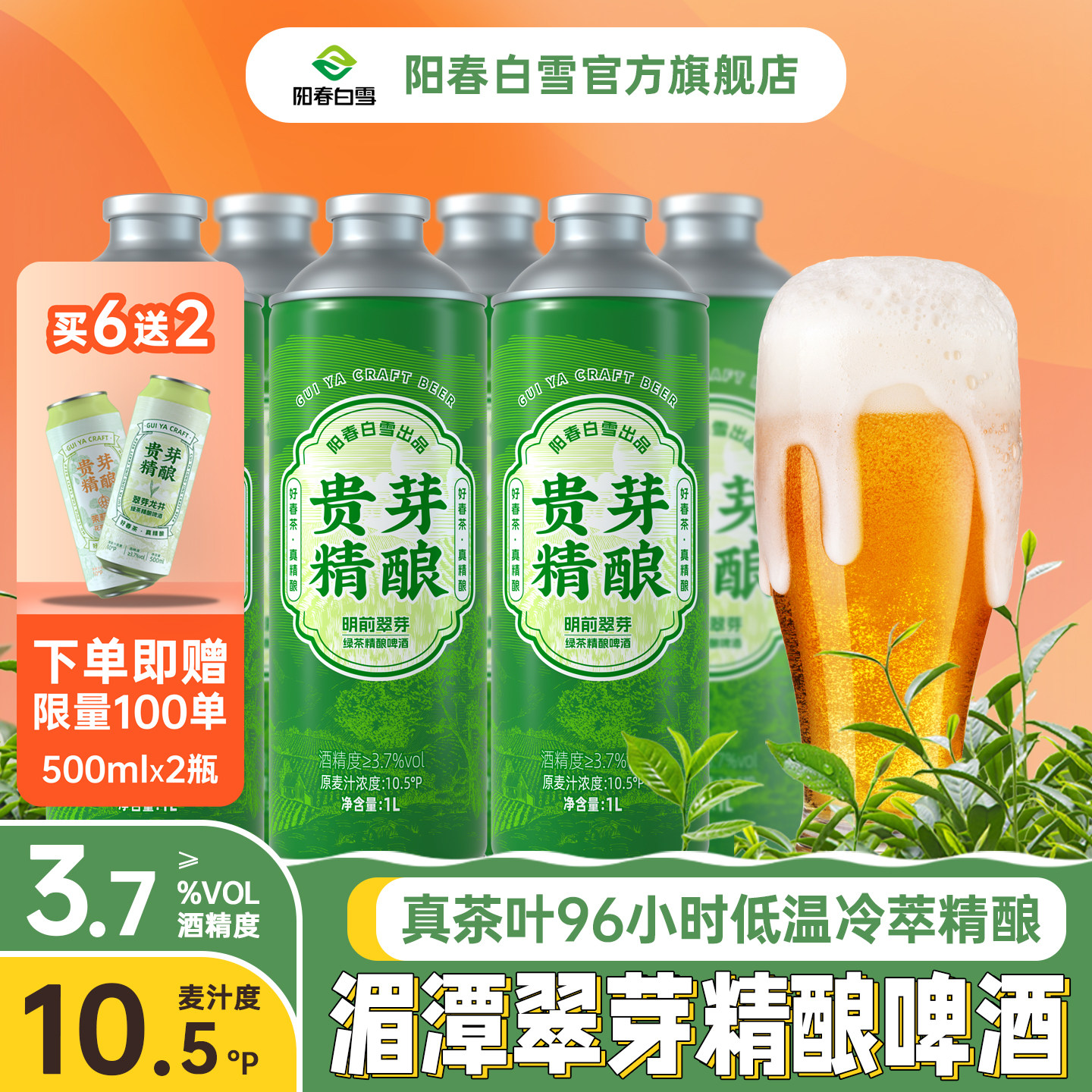 【新品+赠品】阳春白雪贵芽明前翠芽绿茶精酿啤酒新中式茶啤原浆