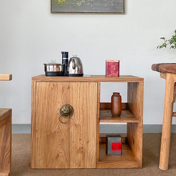 茶水柜实木餐边家用办公水桶烧水柜新中式禅意茶叶柜老榆木边角柜
