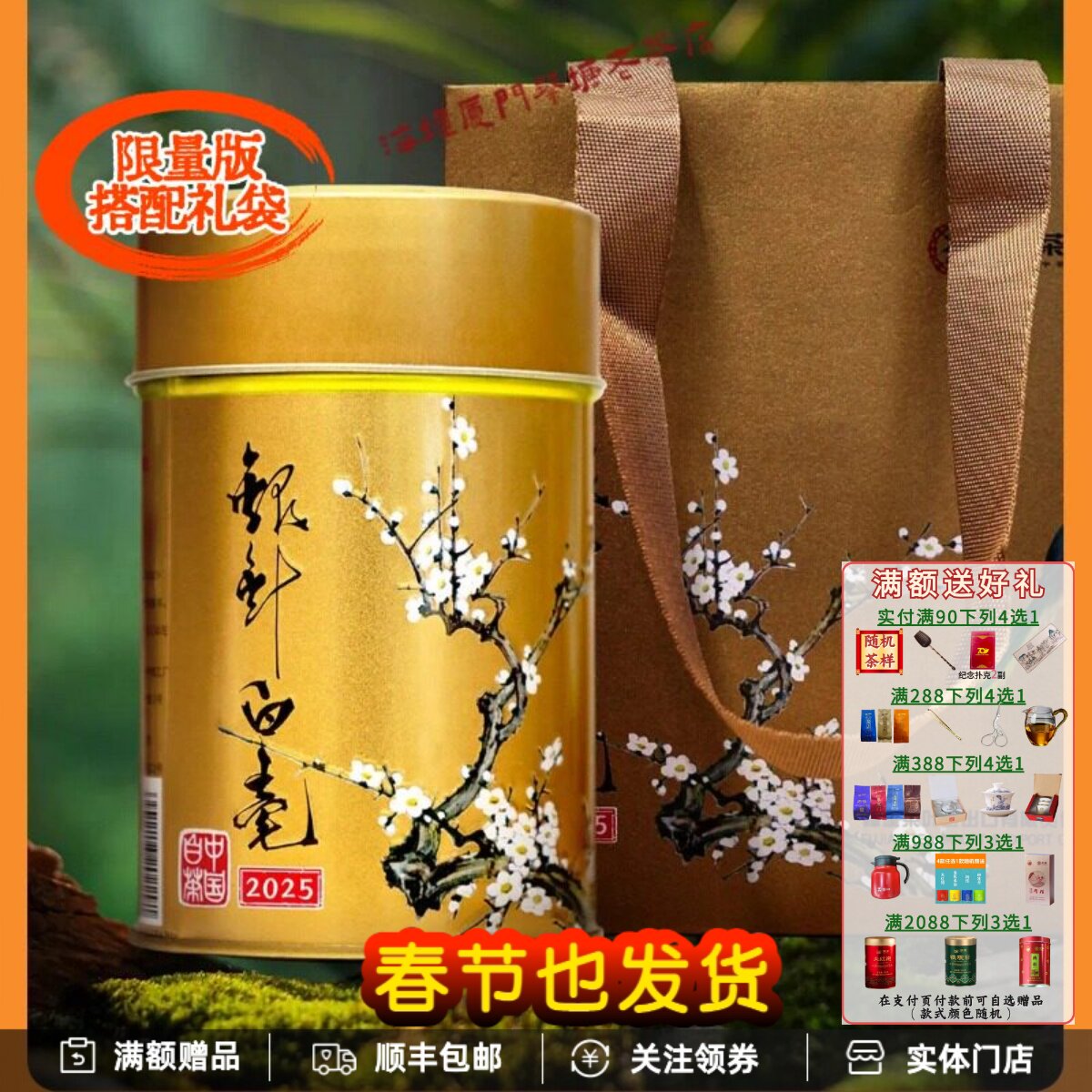 中茶蝴蝶限量金罐银针白毫白茶W903罐装配礼袋2025年份100克