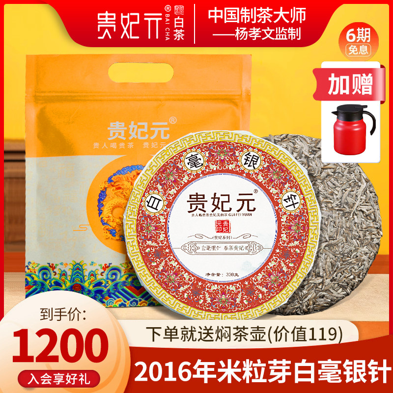 【贵妃】贵妃元茶叶福鼎大白茶2016原料米粒芽白毫银针饼300g送礼