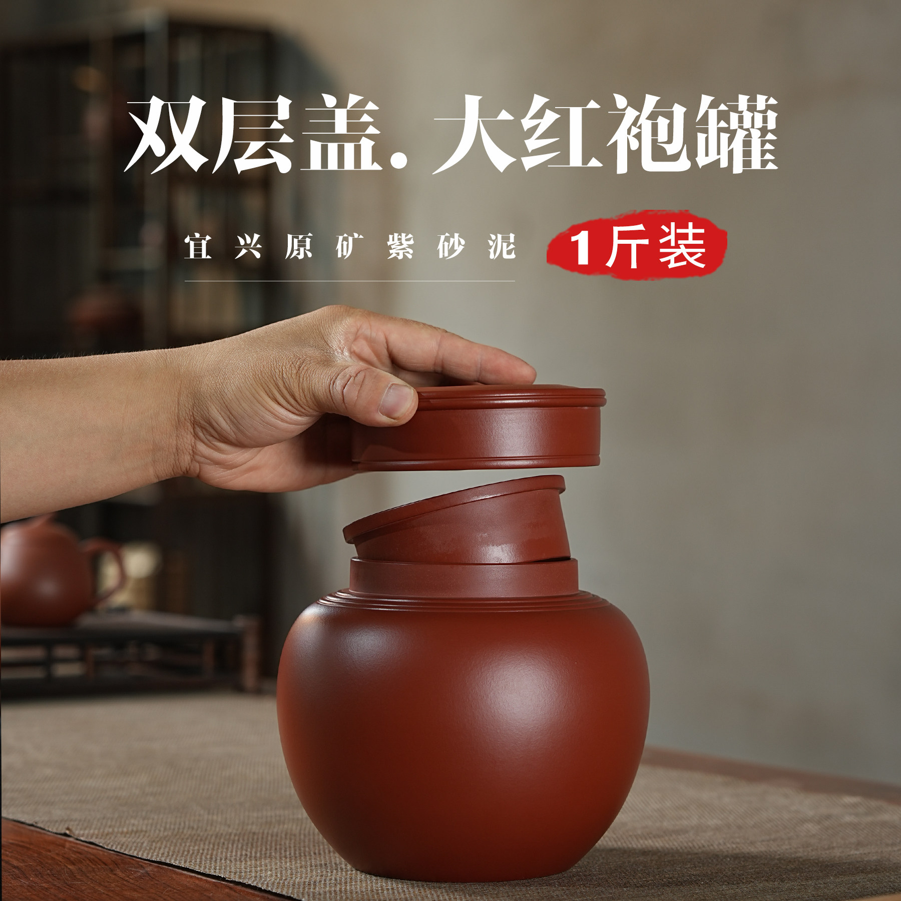 1斤装大红袍双层盖紫砂茶叶罐小号散茶密封储存罐精致防潮