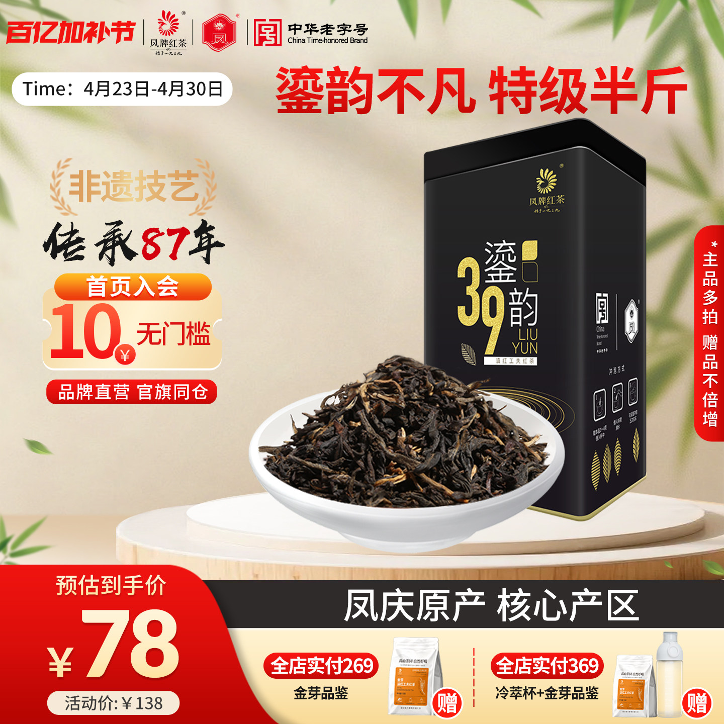 凤牌红茶正宗滇红茶特级云南特级茶叶39鎏韵凤庆原产250g半斤