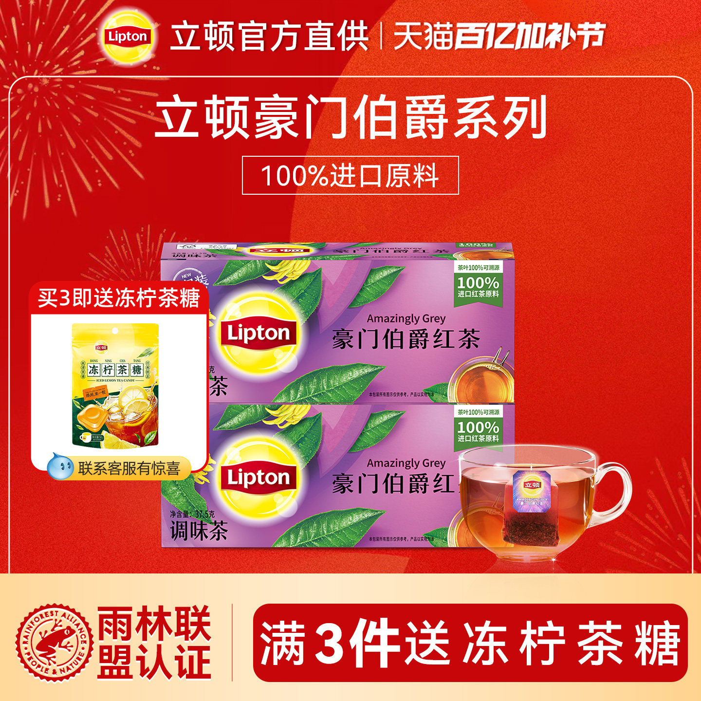 立顿2025新红茶叶包伯爵茉莉花特乌龙一绿茶级冷泡浓香型顶专用