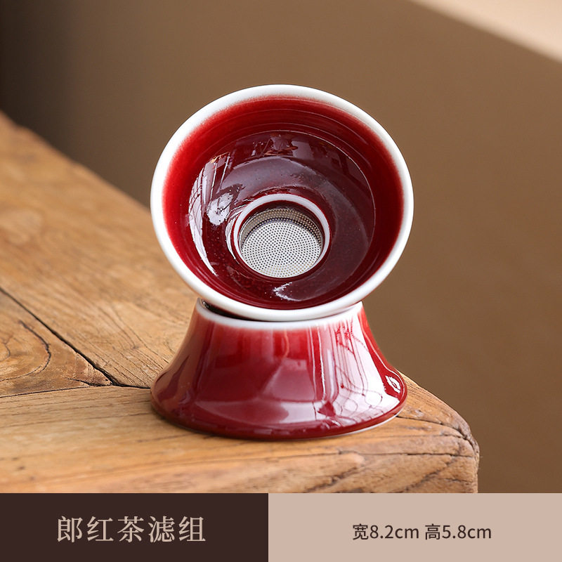 原矿郎红釉过滤网茶漏婚庆过滤茶叶故宫红单色釉茶红色过滤