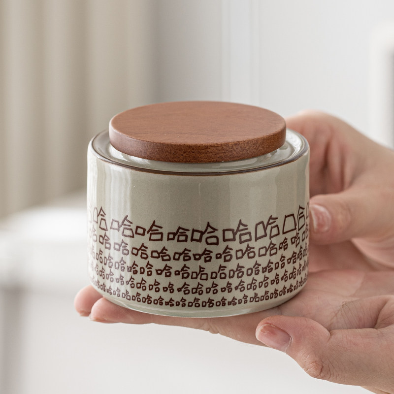 哈哈陶瓷茶叶罐家用防潮无纺布密封罐小号储物罐普洱茶叶收纳茶仓