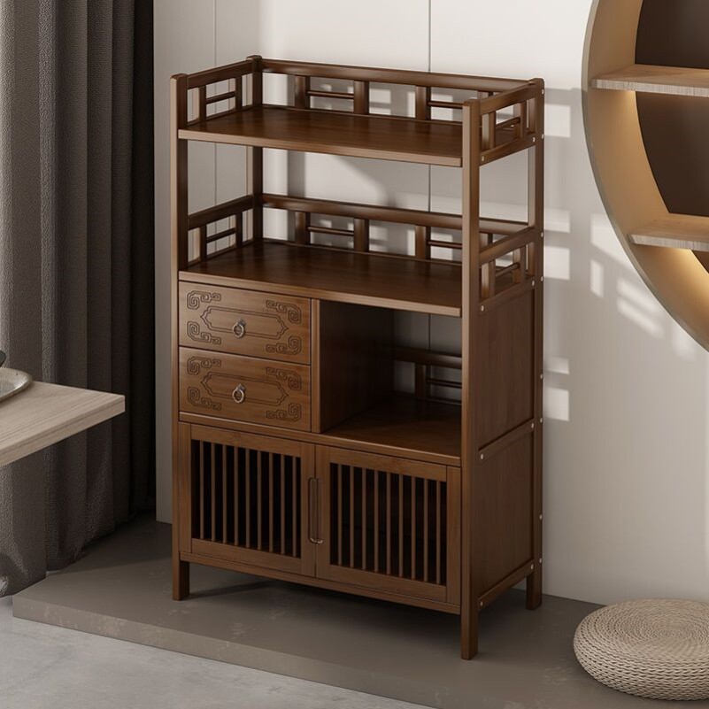 茶水柜置物架实木多层茶叶柜茶具收纳储物架茶边柜置物架茶台边柜