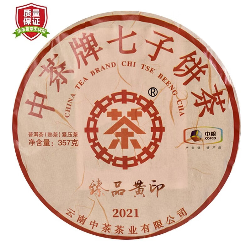 中茶 2021臻品黄印普洱茶熟茶 云南七子饼 中华老字号 357克*1片
