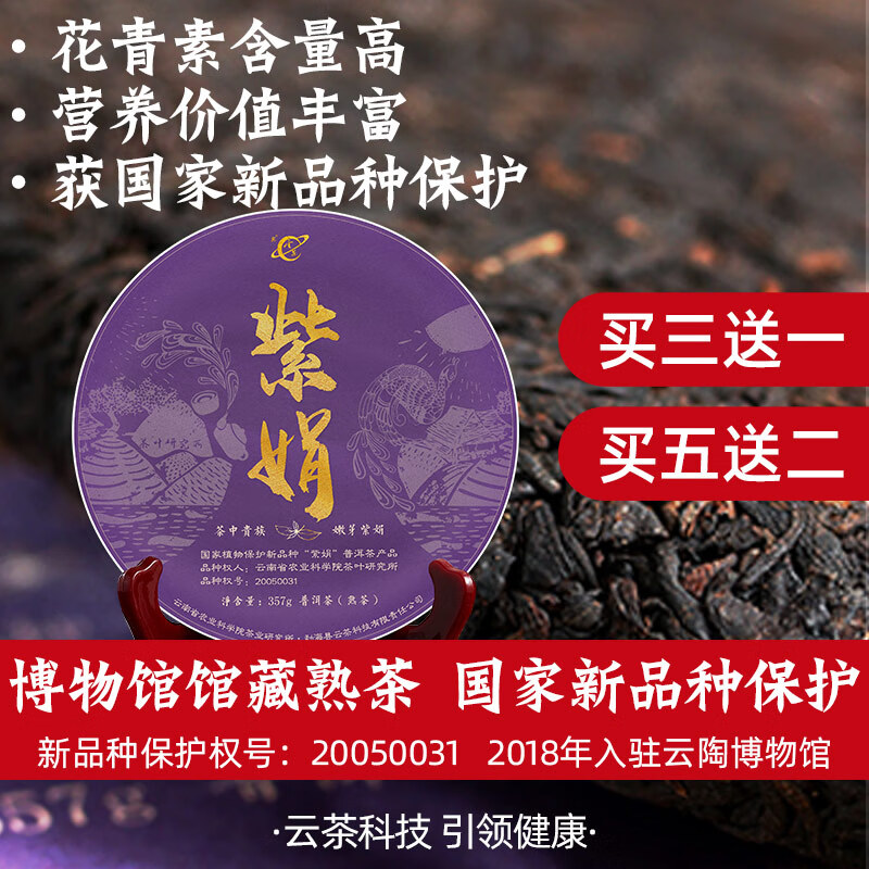 宾 云南农科院茶科所云茶科技2024母本紫娟普洱茶熟茶七子饼茶357g 紫娟熟茶*1饼