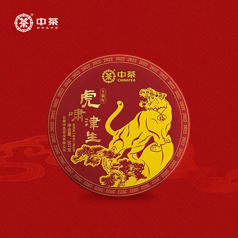 中茶普洱茶 壬寅虎年生肖纪念茶 2022年虎啸津生熟茶 饼茶 357克/饼 单饼装357g*1饼