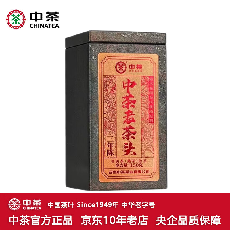 中茶牌茶叶 云南普洱茶 2024年老茶头三年陈布朗熟茶散茶铁罐装 单罐装 150g*1罐