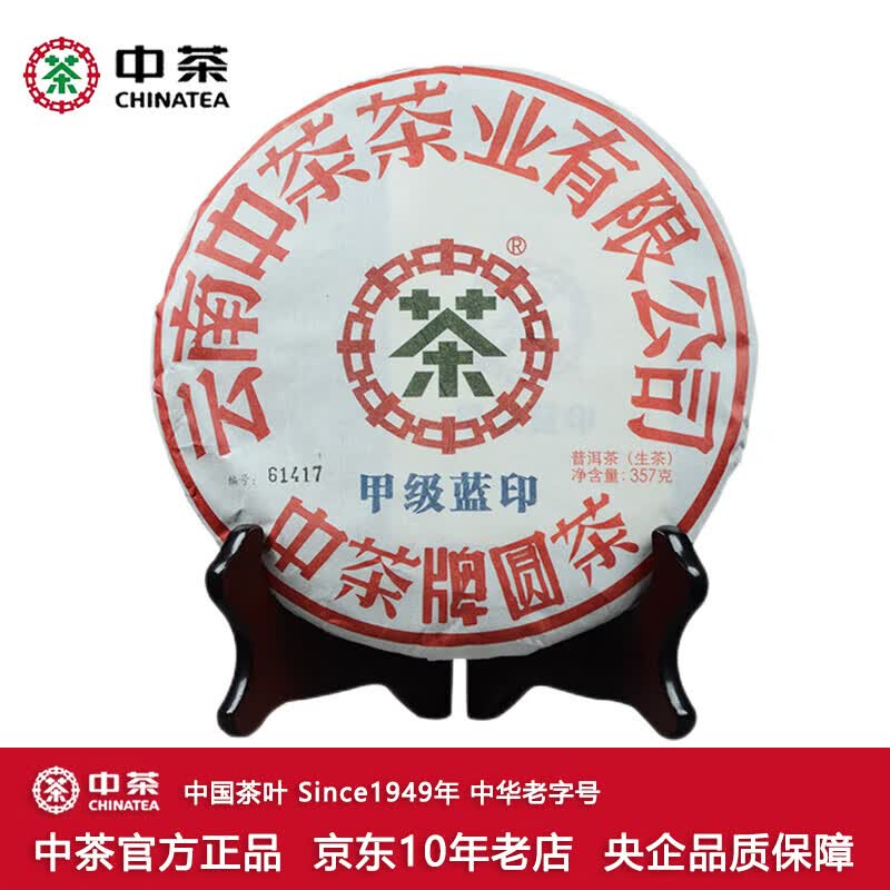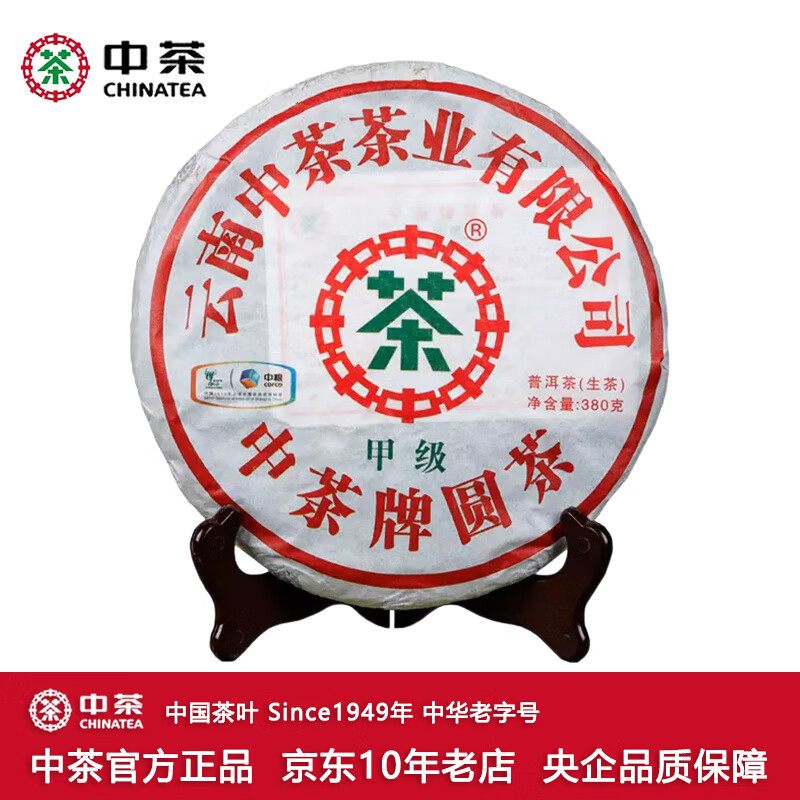 中茶牌茶叶 云南普洱茶 2010年甲级蓝印 中期老茶南方干仓生茶饼 单饼装 380g*1饼