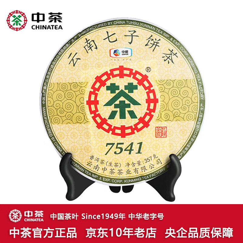 中茶牌茶叶 云南普洱茶 7541经典唛号茶七子生茶饼 2019年 单饼装 357克 * 1饼