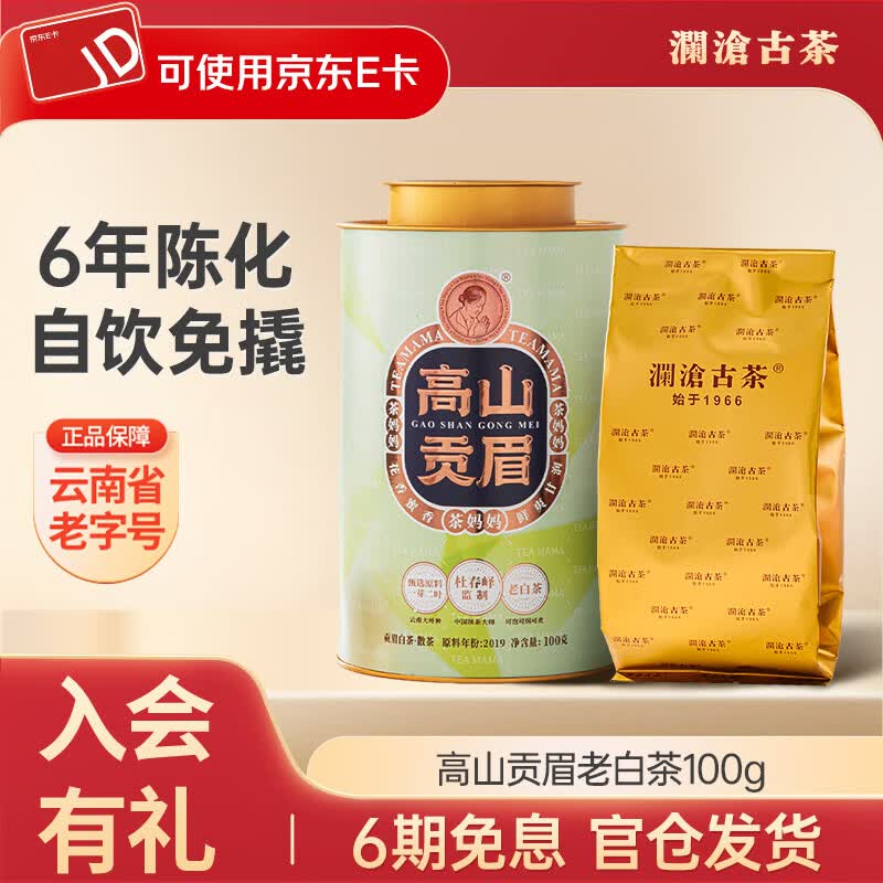 澜沧古茶白茶 茶妈妈云南高山贡眉老白茶 2019年原料 口粮茶散茶免撬茶叶 【6年陈】 100g*1罐