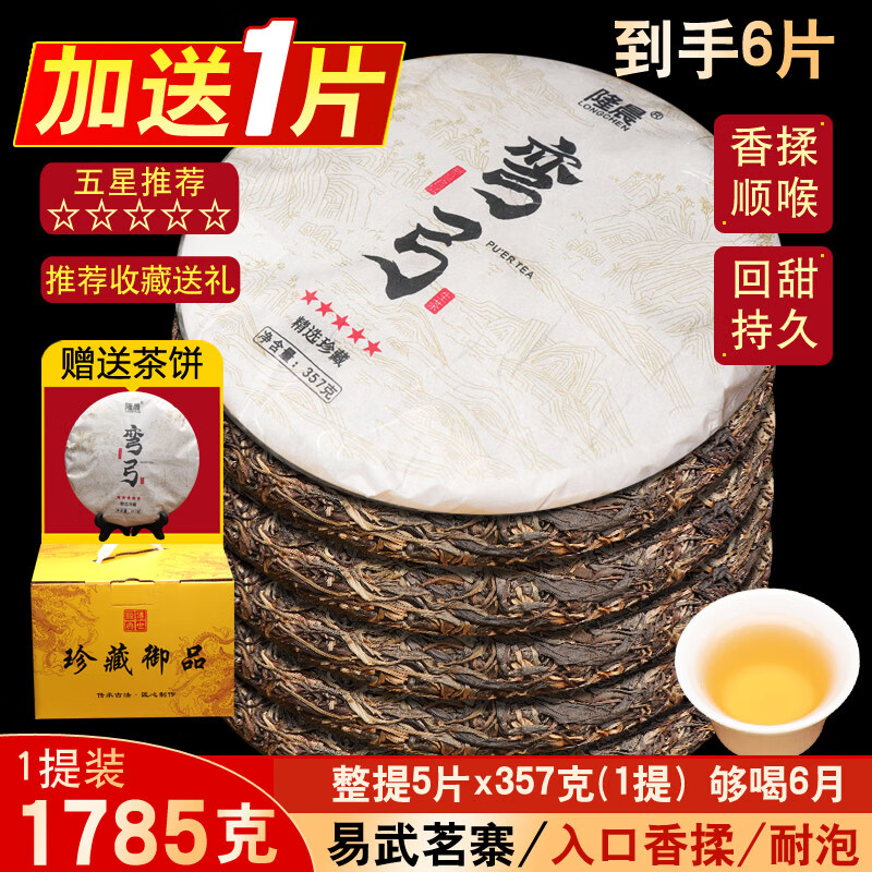 隆晨整箱10片2021年易武弯弓普洱茶生茶茶饼生普古树茶云南七子饼茶叶 1提5片+送1片(到手6片)