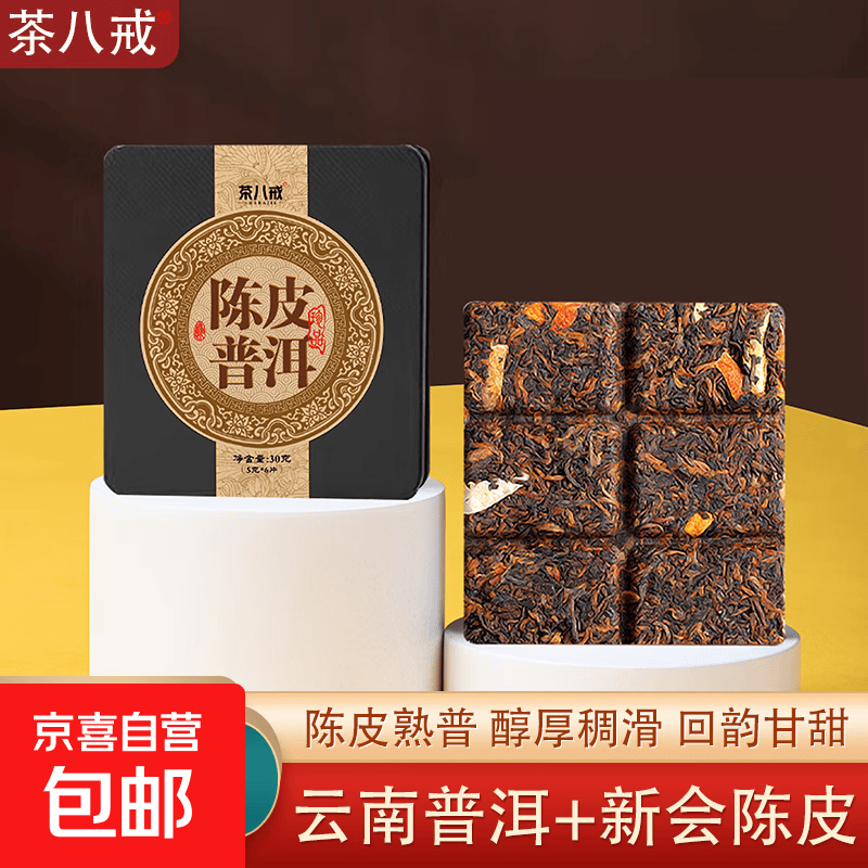 陈皮普洱茶叶云南正宗陈年普洱熟茶柑普茶便捷小方片铁盒装茶饼 陈皮普洱韵香1盒30g