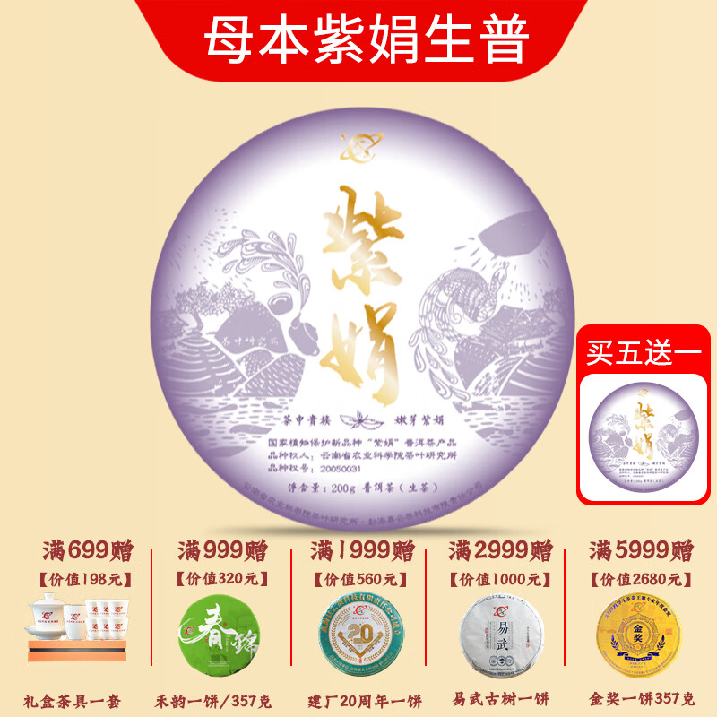 宾云南云茶科技茶厂2025母本紫娟普洱茶云南农科院茶叶所生普洱茶叶 2025紫娟生茶200g*1饼