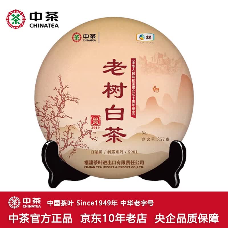 中茶牌茶叶 蝴蝶福鼎白茶 老树白茶5901白牡丹白茶饼 2019年 单饼装 357g*1饼