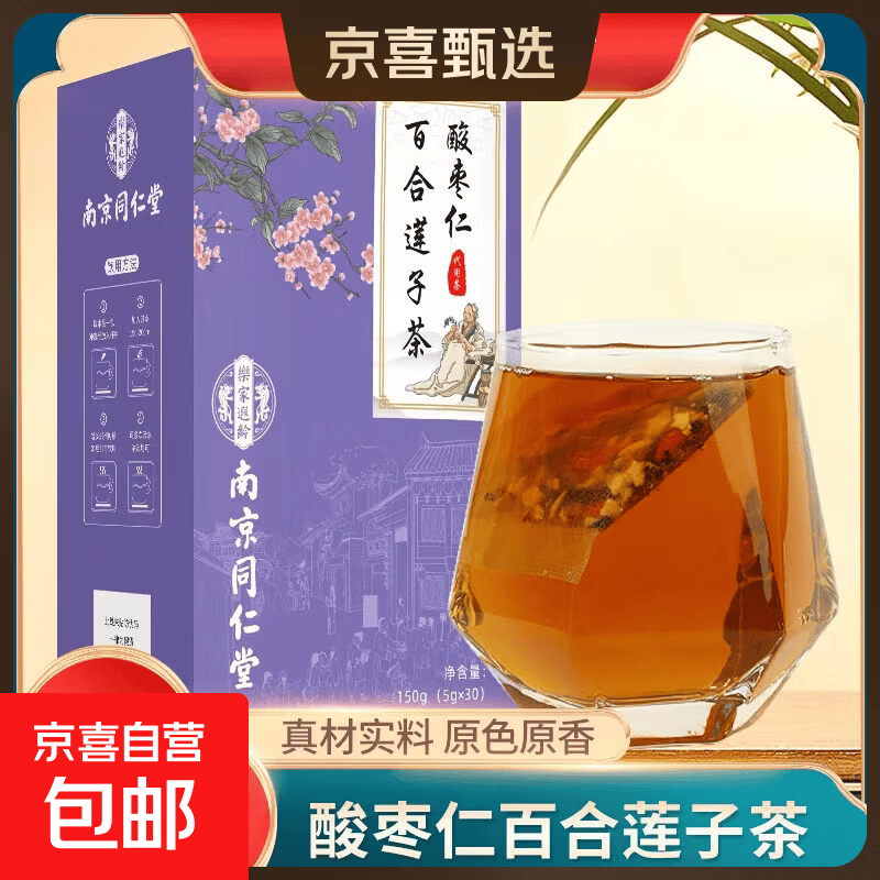 南京同仁堂酸枣仁百合莲子茶助眠安神安睡茶无添加养生茶包 5g*30袋 (1盒)