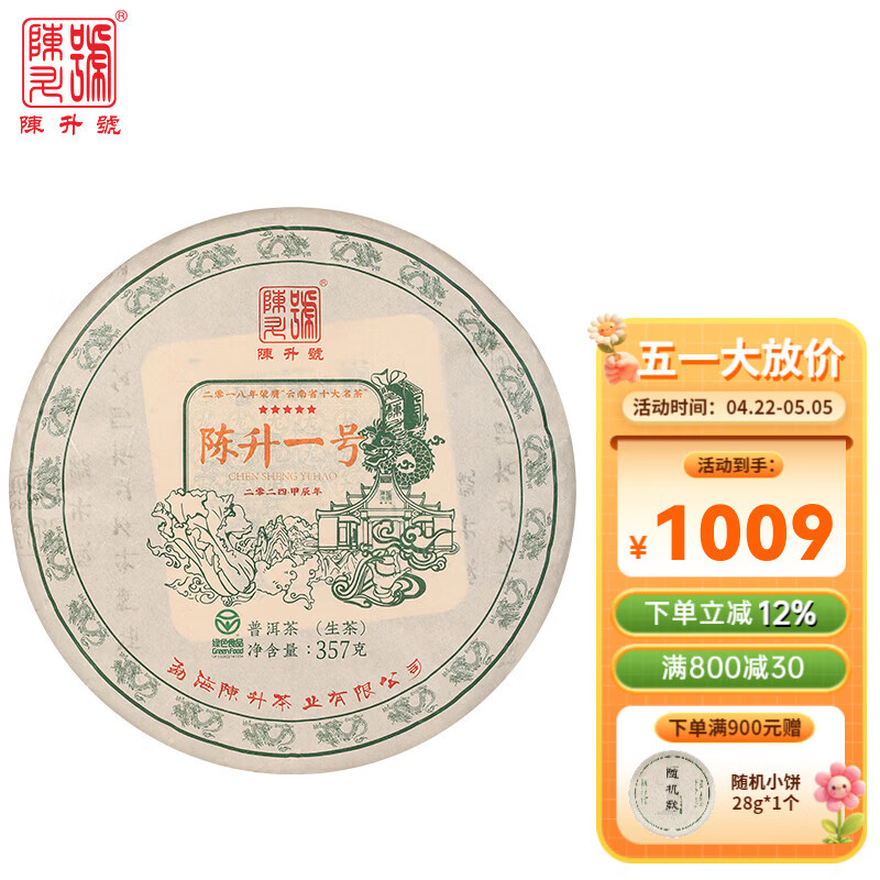 陈升号2024年陈升一号357g普洱茶普洱生茶生普标杆饼茶生茶气足型 单饼357g*1饼